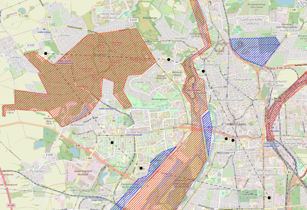 Die Theorie ist aber nicht nur abstrakt interessant, sondern auch praktisch nützlich. Ein Beispiel ist die Standortplanung: Wir möchten ein zentrales Medikamentenlager in Halle (Saale) bauen, das Krankenhäuser und Arztpraxen per Drohne beliefert. Gesucht ist ein Standort, der